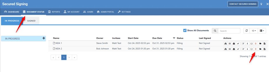 Users in your Bullhorn/JobAdder account who are connected to Secured Signing as a ‘Collaborator’ can now delete documents sent by other users.