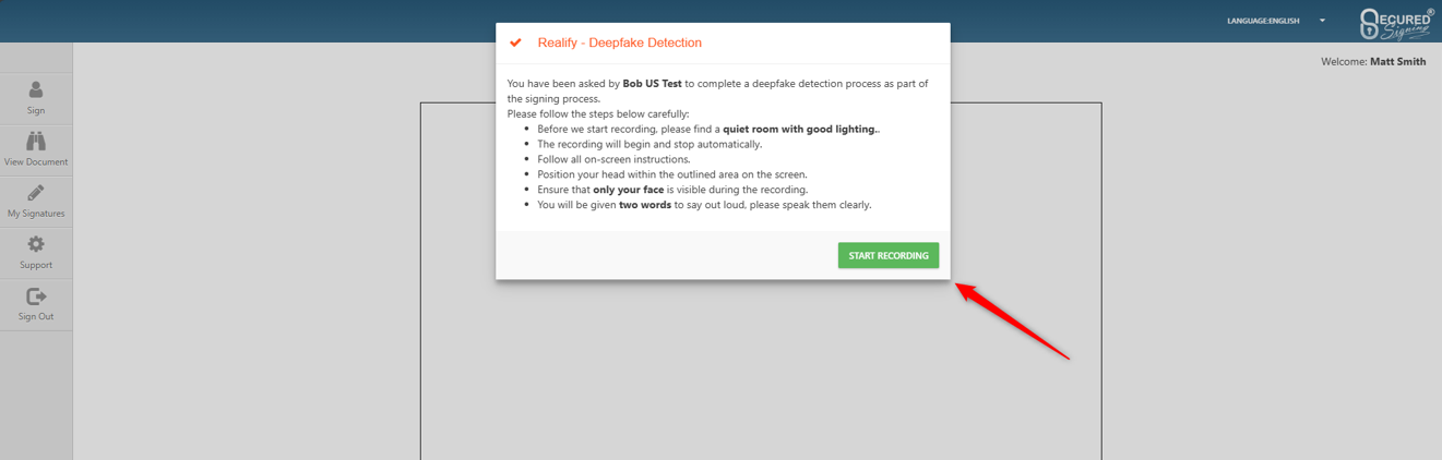 TIP: Before inviting your signers to a Deepfake Test, make sure they follow the below steps for best results.